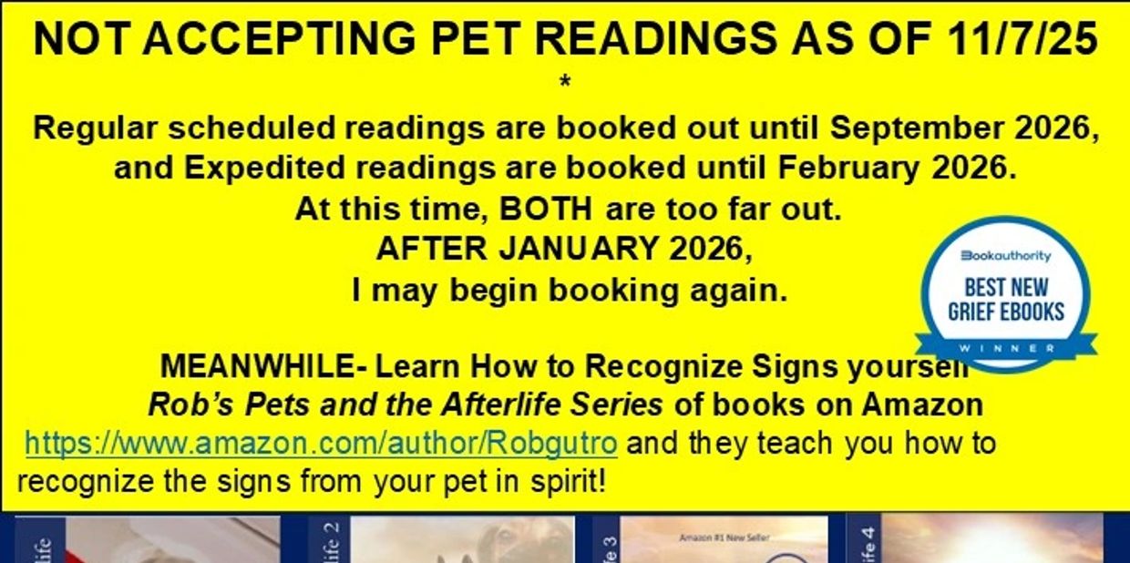 Email Rob at Rob@robgutro.com and ask for a reading date. Please provide YOUR name and Your pet's name. - Rob will respond with the date and next steps